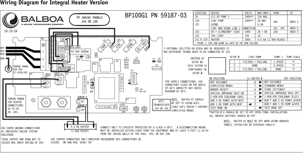 A wiring diagram is located on the back side of the Balboa Control System for your technician to reference. The diagram is also shown below: