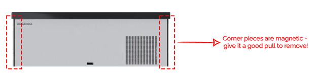 Remove the two corner trim pieces by gently pulling them away from the unit.