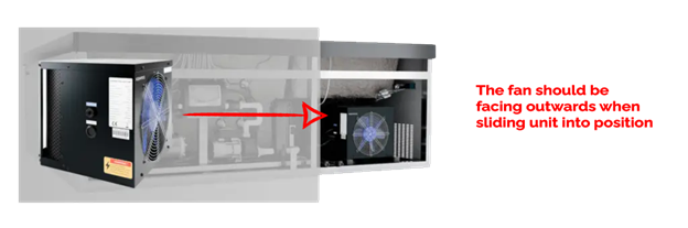 4. Place the chiller onto the frame inside of the equipment compartment