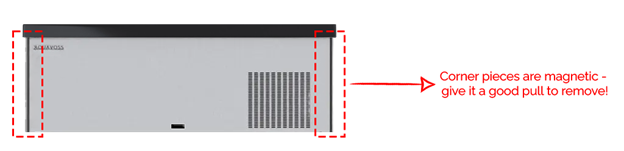 Remove the two corner pieces by gently pulling them away from the unit.